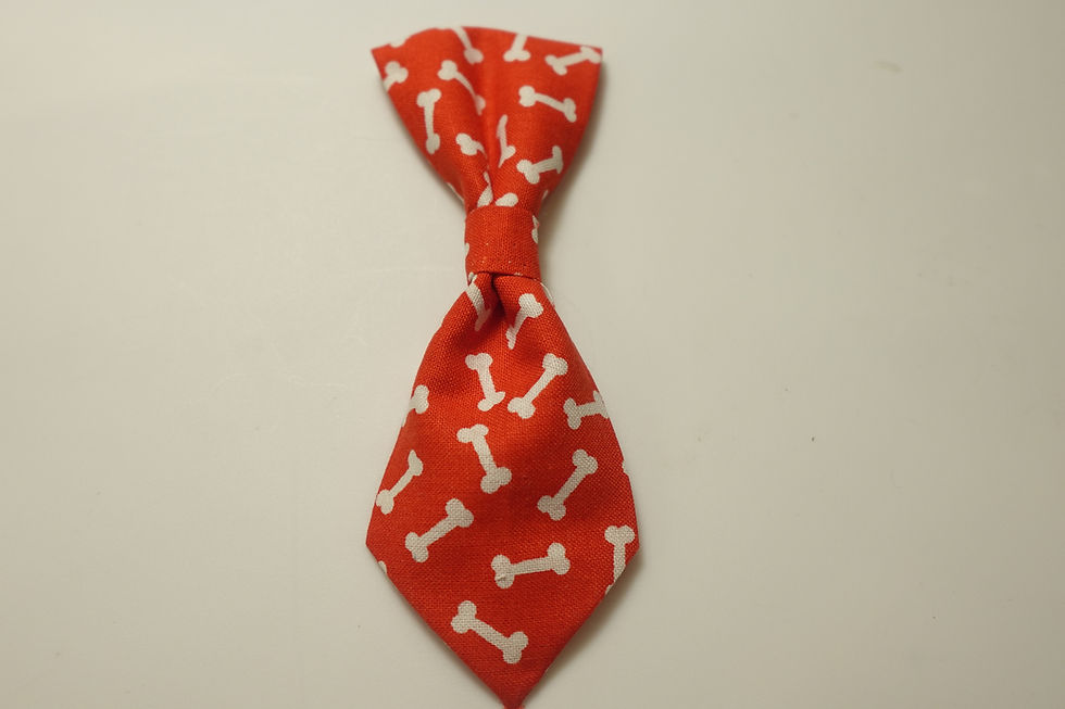 2 Piece Set Red & White Bone Print Bow Tie & Neck Tie